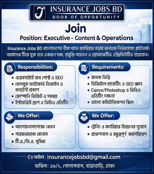 বেঙ্গল ইসলামী লাইফের পাবলিক রিলেশন্স বিভাগে নিয়োগ, আবেদন করুন এখনি