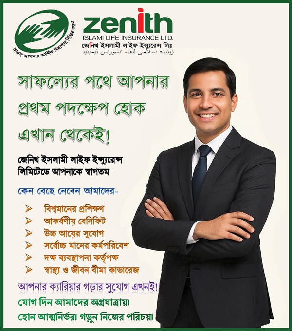 ফাইন্যান্সিয়াল এসোসিয়েট পদে জনবল নেবে জেনিথ ইসলামী লাইফ, কর্মস্থল সা...